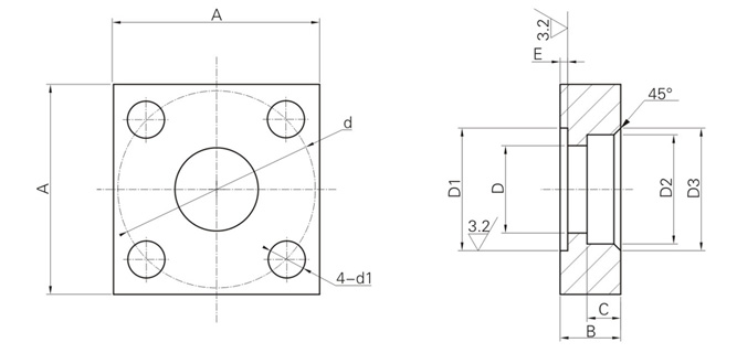 2.1連接法蘭請用戶參照下列尺寸加工:
