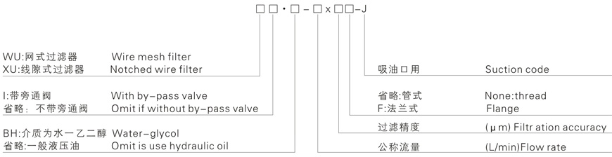 WU,XU系列吸油過濾器屬于粗過濾器,一般安裝在油泵的吸油口處,用以保護油泵避免吸入較大的機械雜質(zhì)。該過濾器結(jié)構(gòu)簡單,通油能力大阻力小,并設(shè)有管式、法蘭式連接,分網(wǎng)式、線隙式兩種。