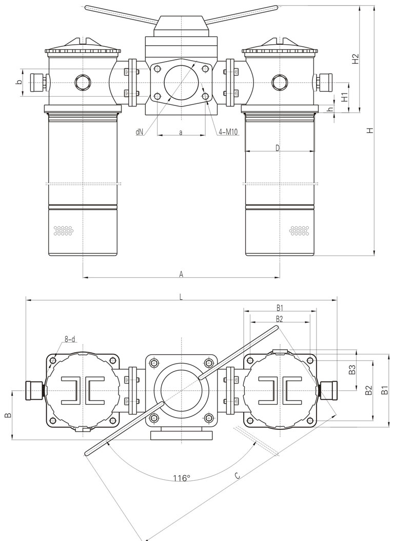 | DN | M | H1 | B | B1 | B2 | B3 | d | A | D | L | H | H2 | C | h | δ | |