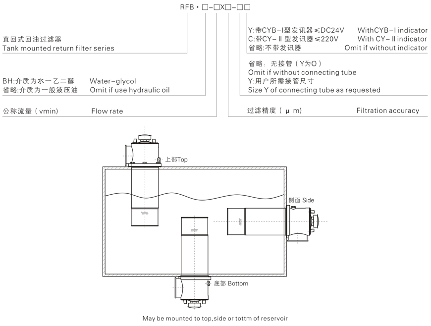 1、本過(guò)濾器可直接安裝在油箱頂部,側(cè)面或底部,過(guò)濾器頭露于油箱外,筒體部分浸入油箱內(nèi),從而簡(jiǎn)化了系統(tǒng)管路,使系統(tǒng)布置較為緊湊。